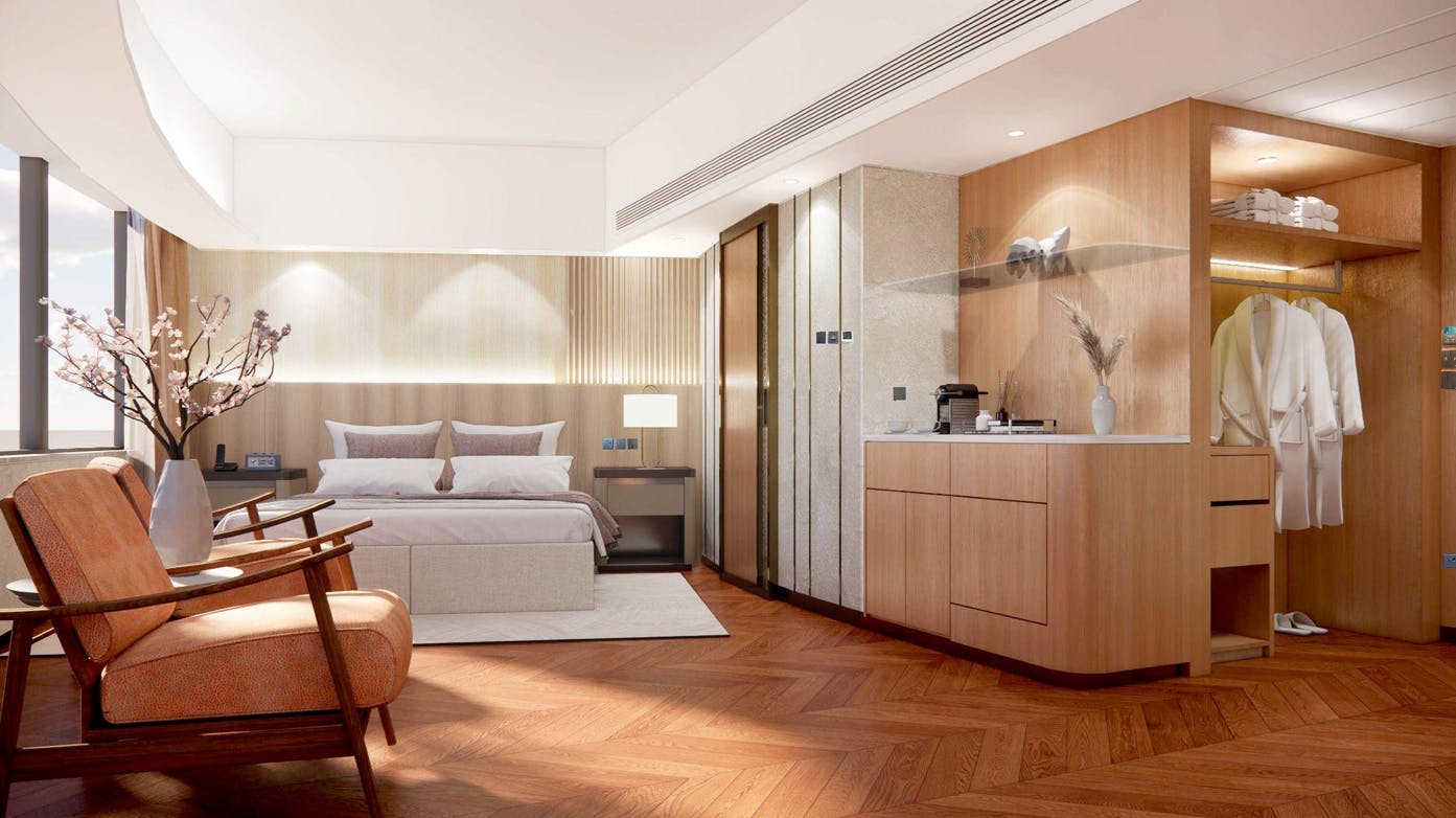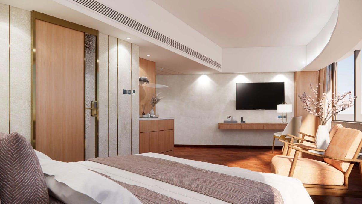 行政開放式客房位於26樓,面積為360平方尺,配有雙人大床或兩張單人床。房間搭配木質裝飾與寬敞的佈局營造宜人的氣氛。房間視野開揚,開闊的窗戶讓您可以盡覽城市美景。所有房間均配備完善的設施,讓您可以享有優質的體驗。